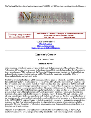 University College Newsletter, November/December 1999